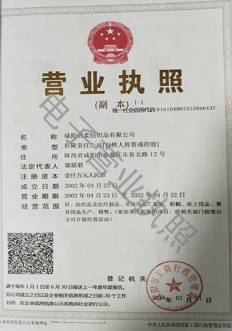 咸陽(yáng)潔柔紡織品有限公司由原國(guó)有大型棉紡織企業(yè)于2002年優(yōu)化而成的工業(yè)企業(yè),09年注冊(cè)商標(biāo):靚潔柔,公司成立已十三年有余。公司常年生產(chǎn)純棉織物,各類(lèi)產(chǎn)品均經(jīng)過(guò)陜西省纖維檢驗(yàn)局檢驗(yàn),質(zhì)量符合國(guó)家標(biāo)準(zhǔn)。主要生產(chǎn)提花以及素色毛巾、毛巾被、枕巾、床單、被套、浴巾、賓館配套巾等。毛巾、毛巾被主要銷(xiāo)往歐美市場(chǎng)。陜西省及周邊省市的學(xué)校、酒店公寓大部分采用我公司產(chǎn)品,并做各類(lèi)勞保、超市毛巾、枕巾等產(chǎn)品。其原材料均采用新疆及本地優(yōu)等棉花做原料。其工藝流程嚴(yán)格按照國(guó)標(biāo)生產(chǎn),其色澤、吸水性、強(qiáng)力超過(guò)國(guó)家標(biāo)準(zhǔn),含棉量100%,為天然環(huán)保產(chǎn)品。歡迎廣大客戶(hù)看樣洽談?dòng)嗀洠覀儗⒁詢(xún)?yōu)質(zhì)的產(chǎn)品,良好的信譽(yù)為您熱情服務(wù)!